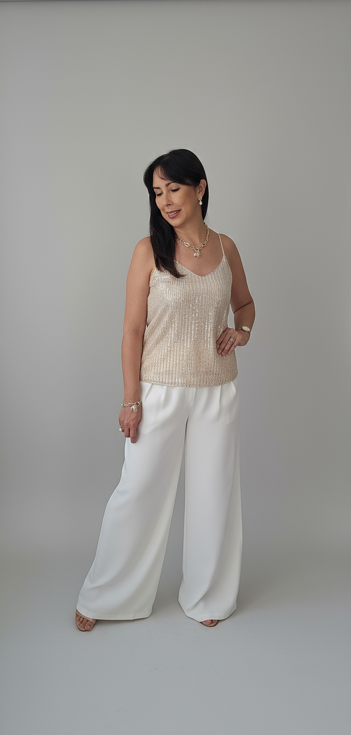 Este set es muy versátil ya que puede usarse de manera casual y elevarlo con los accesorios correctos.