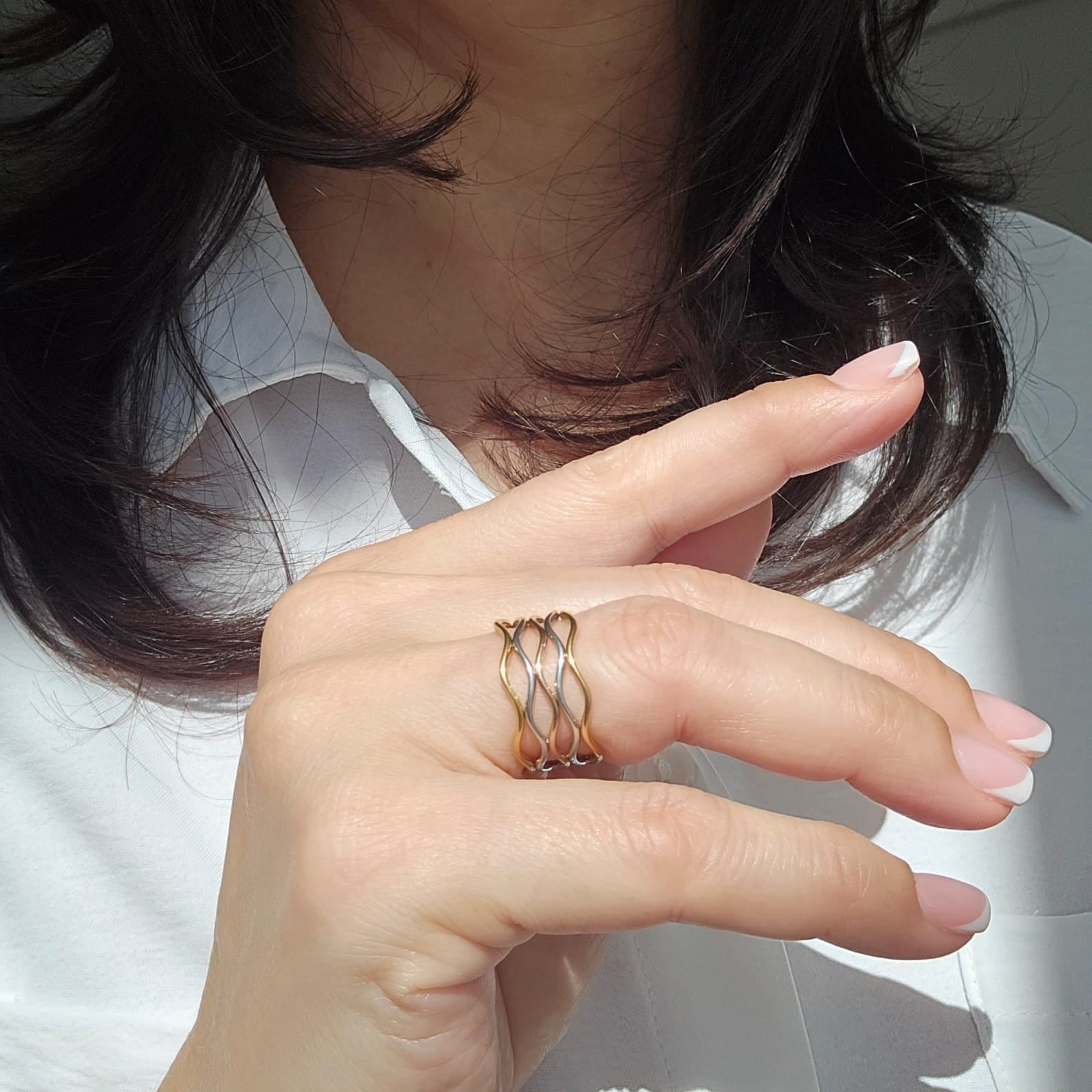 -The Alba Ring is expertly crafted from durable stainless steel and features a stunning tri-color design. With its timeless style and high-quality materials, this ring is sure to make a statement.