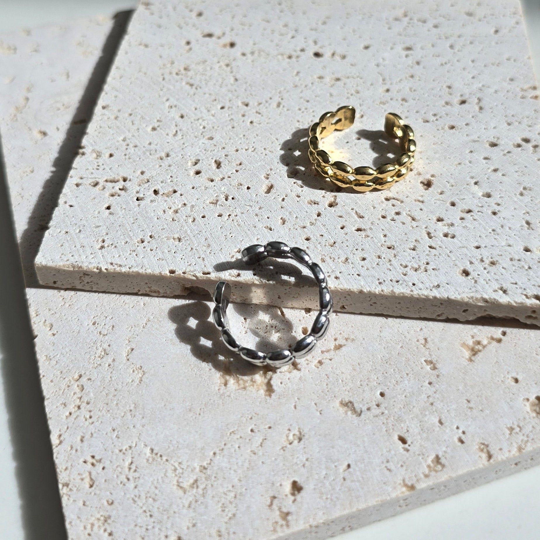 Elevate any outfit with the Alma Ring! Made from delicate stainless steel, this minimalist ring offers a touch of elegance to any look. Durable and stylish, it's the perfect addition to your jewelry collection. Upgrade your style today! Delicate Minimalist Stainless Steel Ring.