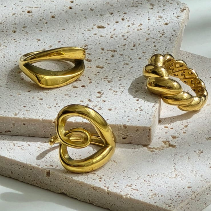Expertly crafted with high-quality stainless steel, this Sabrina Ring adds a touch of elegance and sophistication to any outfit. It's sleek, minimal design features a gold color that is sure to make a statement. Additionally, the ring is hypoallergenic and durable, making it a long-lasting investment piece for your jewelry collection.