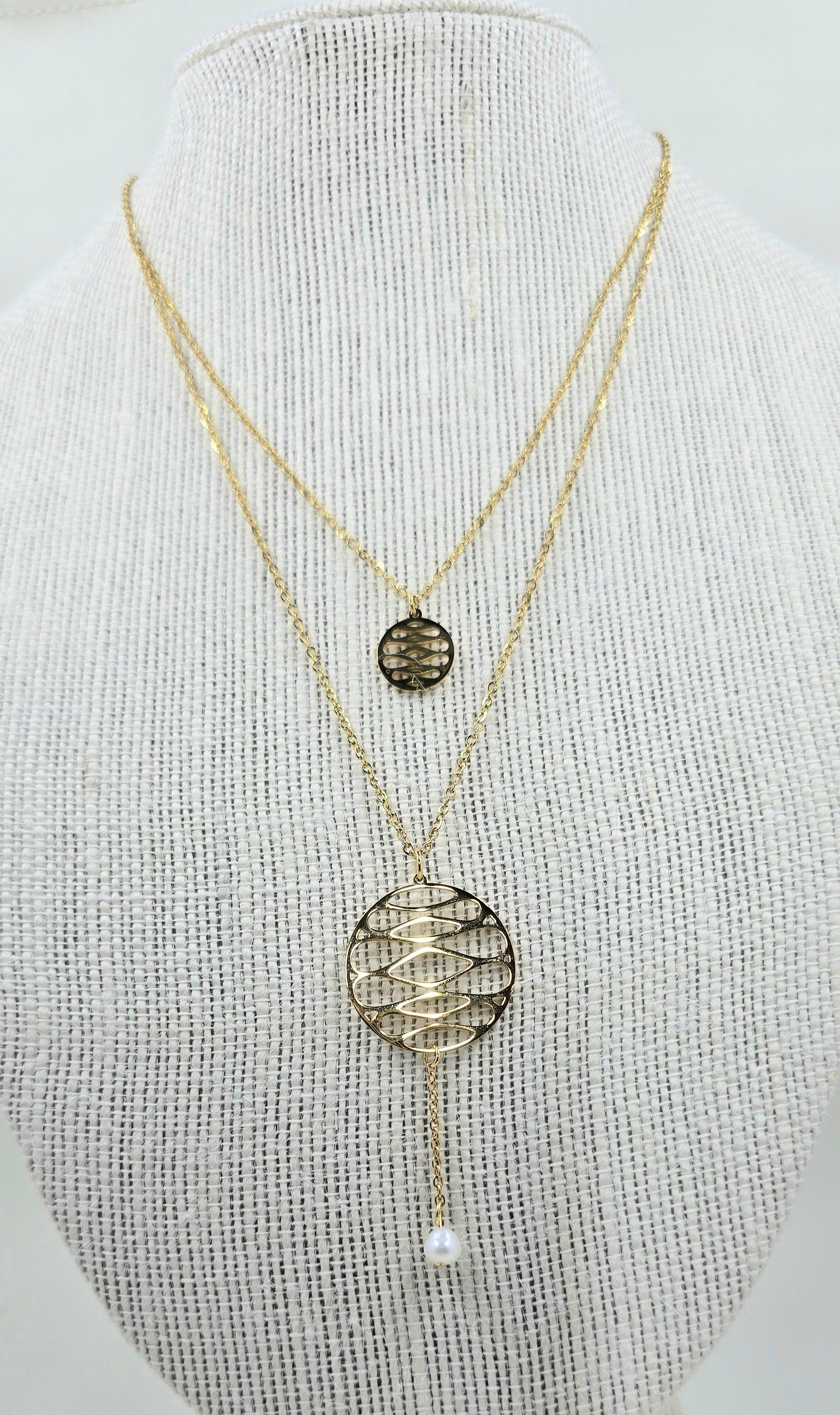 Crafted with a double-layer chain and adorned with a stunning pearl, this timeless piece features an 18" chain with a 2" extension for customizable length. Add elegance to any outfit with this accessory, suitable for any event.